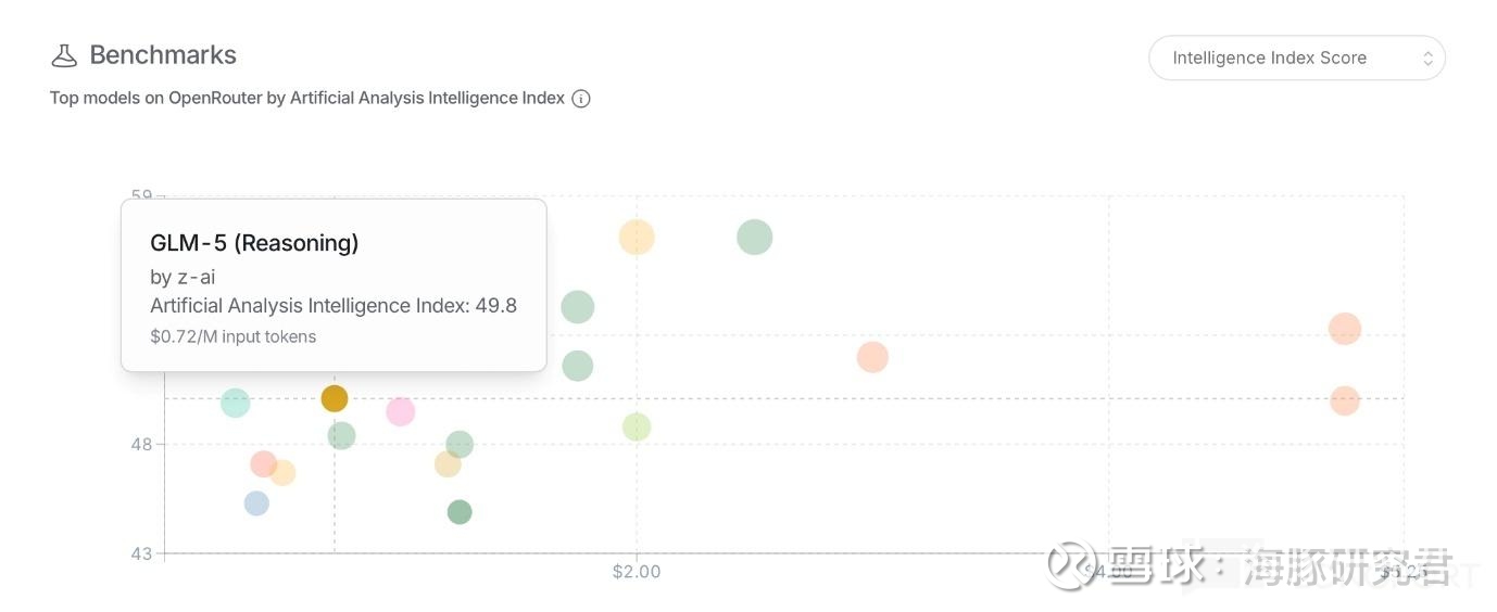而两家的核心区别,在海豚君看来,就是智谱的模型在智能指数上更高一些,换句话说,在 to B 生产力领域,智能 “稀缺性” 是核心资产,也是 Token 销售定价权的核心要义。