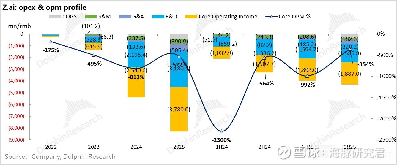 公司管理费用 3.2 亿,同比增长了 290%,相对较快;但与 MiniMax 一样,智谱销售费用同比负增长 25%,下半年仅仅 1.8 亿(同样是模型获客靠模型本身的能力,而不是靠营销)。