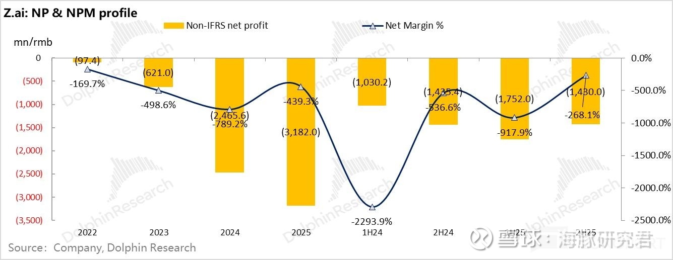智谱 2024 年研发支出 22 亿,25 年收入 7.2 亿,只收回了 24 年研发支出的 33%;25 年 32 亿,26 年收入要翻倍到 14 亿上下,才能看到收入对 25 年研发投入的回收率提升到 45%,与 MiniMax 基本一致。