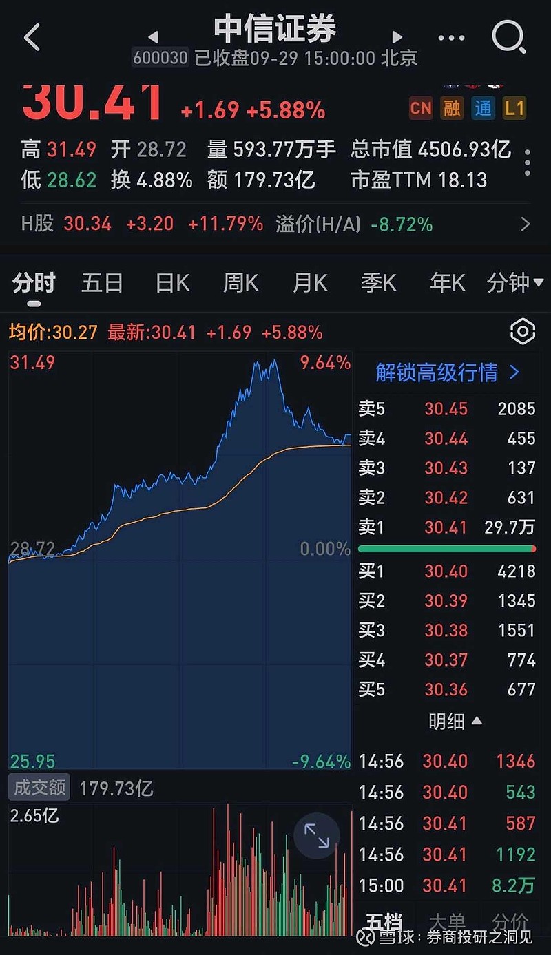 中信证券昨天尾盘再现29.7万手(约是9亿元)的卖单,而且其盘中曾经一度冲击涨停,然后在最后一个小时大幅回落,最后仅仅涨了5.88%,可以说前面几天的巨量压盘再次出现,强行压住了券商板块高昂的牛头,大家都来发表一下自己的看法,认为这次能够打破券商板块以前的一日游和大幅滞涨,甚至都跑输上证指数的魔咒吗?