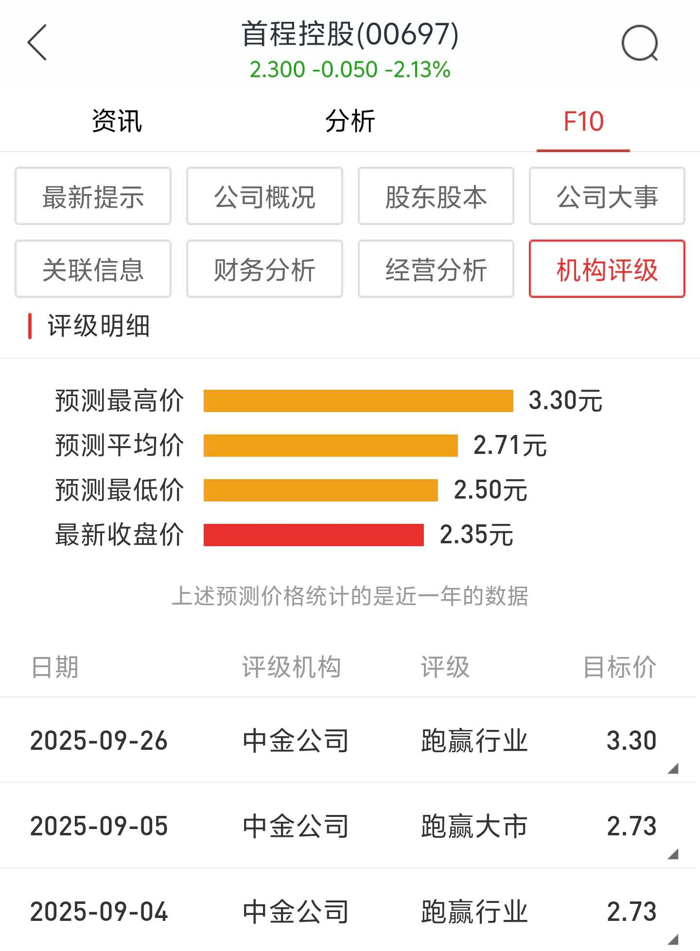 总体来看,个人认为首程控股目前估值合理偏低,股价今天在30日线也就是2.3元稳住了,我不知道明天能不能反弹还是继续下跌,边走边看吧!