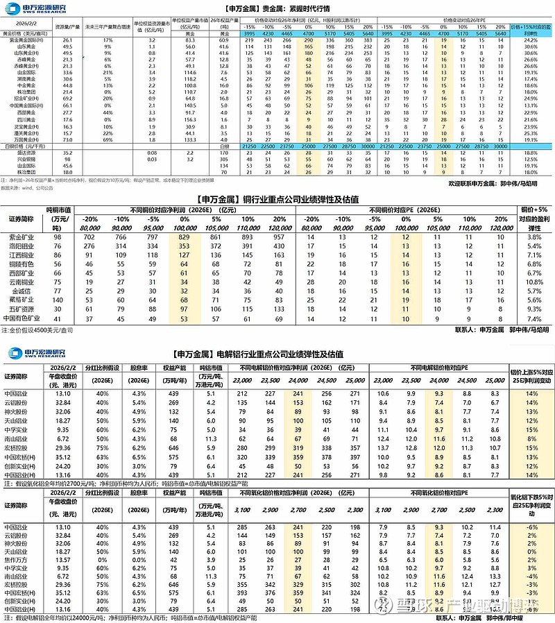 金铜铝重点公司弹性更新(截止2.2中午收盘)