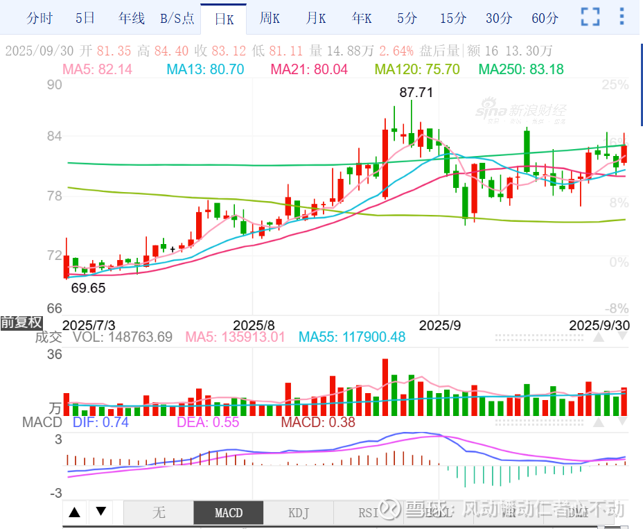 K线尽管受年线压制,但MACD已经金叉,很重要的一点是量能的5日线已经连续5日超过55日线,准备动作都已经做足了,就等节后开涨了。