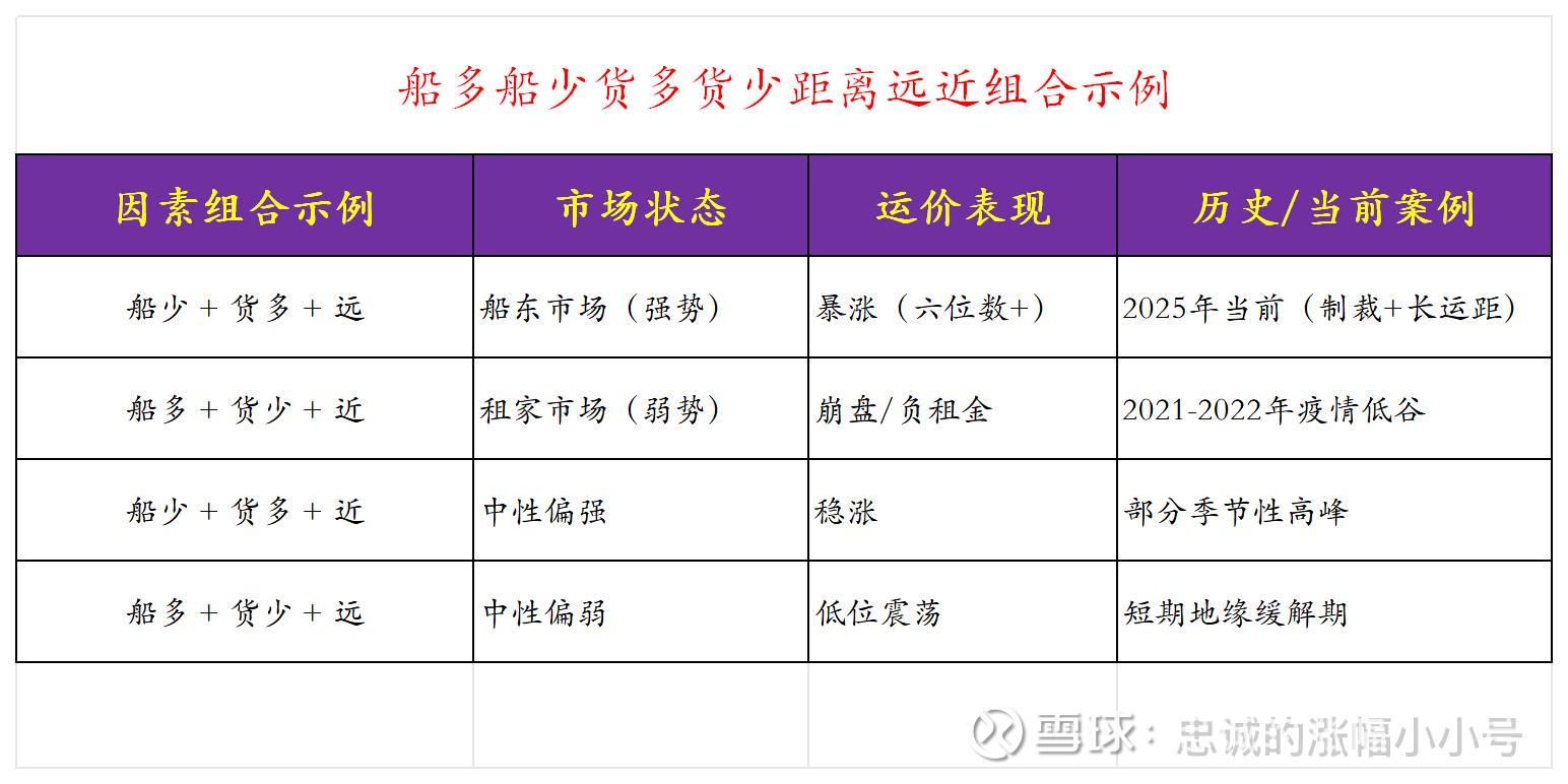 船多船少是供给定调,直接决定市场底线;货多货少是需求拉动力;距离远近是隐形的运力调节器,远距=变相减少有效运力,近距=变相增加有效运力,对运价的撬动远超单纯的船货数量对比。