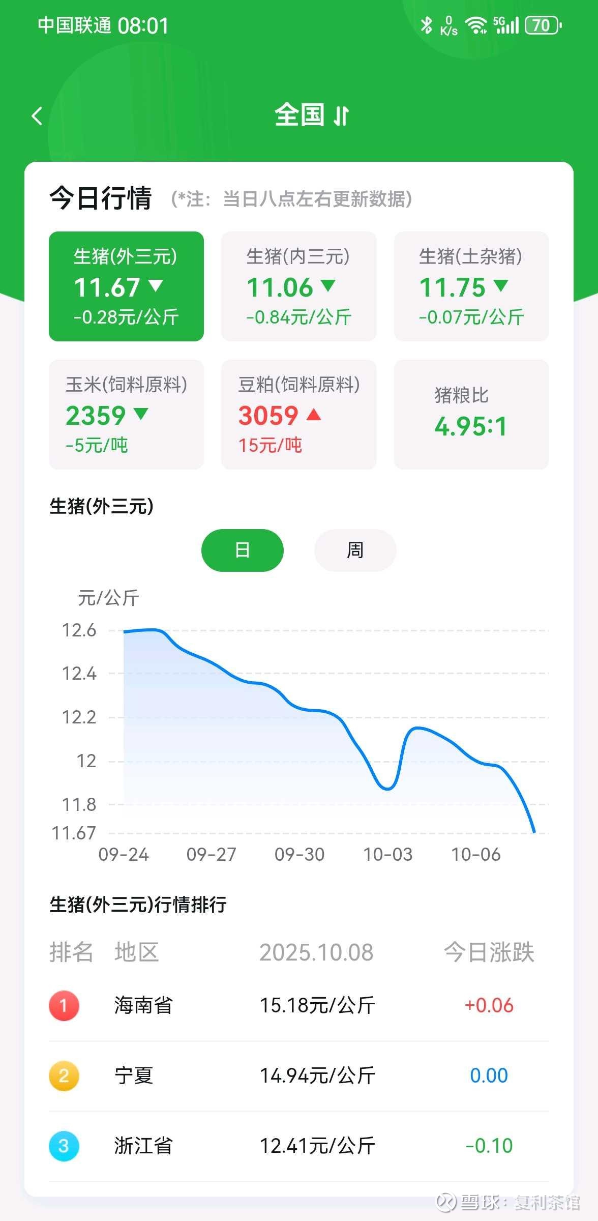 节后猪价下跌加速,多个猪价app显示,猪价进入5-6元/斤区间,部分压栏待涨的超大猪终于压不住了,对猪价反弹的希望落空,全网多数养殖户、贩猪户,一片声看空猪价,过1-2个月,能不能低点进入4-5元区间,还有待观察。