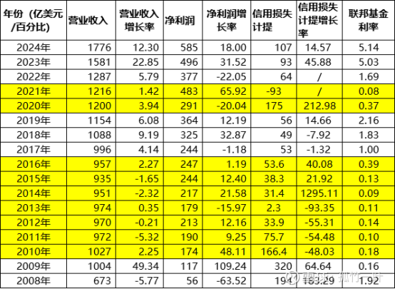 强如摩根大通,在低利率环境下收入几乎没有实现增长,净利润增长也靠减少计提来实现,最极限的操作是在2013年,信用损失计提较上年下降93%,基本算是没有计提。