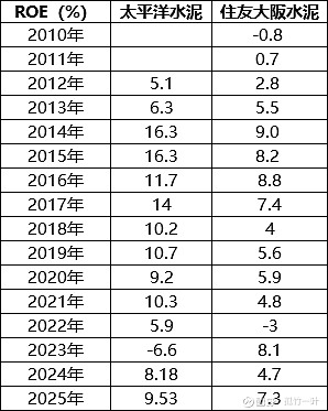因为有海外收入形成的新支柱,太平洋水泥在2012年至2024年期间的ROE基本上维持在9%水平,而住友大阪水泥的ROE在此期间平均水平为5.5%。