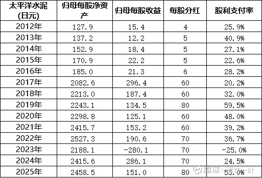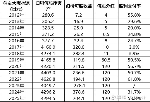 两家水泥公司在2018年进行了合股,每年保持良好的分红。比较奇怪的是,多年采取固定金额分红的方式,即不管经营好坏,都固定分那么多钱。即便在2023年亏损了,也照分不误,股利支付率平均保持在30%以上,体现了公司强大的现金流能力。