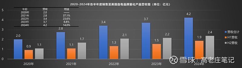 这里有个疑问?2023年H1的业绩PPT内显示,2021年,雾化业务毛利率已经提升到40%。2023年H1,雾化业务毛利率提升到58%。是因为统计口径不同造成的2021年雾化业务毛利率差别这么大么?当然并不影响结论,业绩PTT内公布的2023年H1的 毛利率是58%,资本市场大会公布的2024年H1的毛利率是60%,两者增速是合理的。