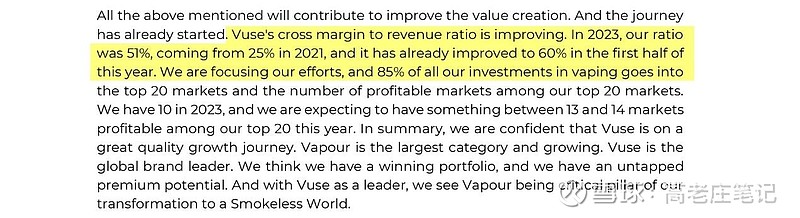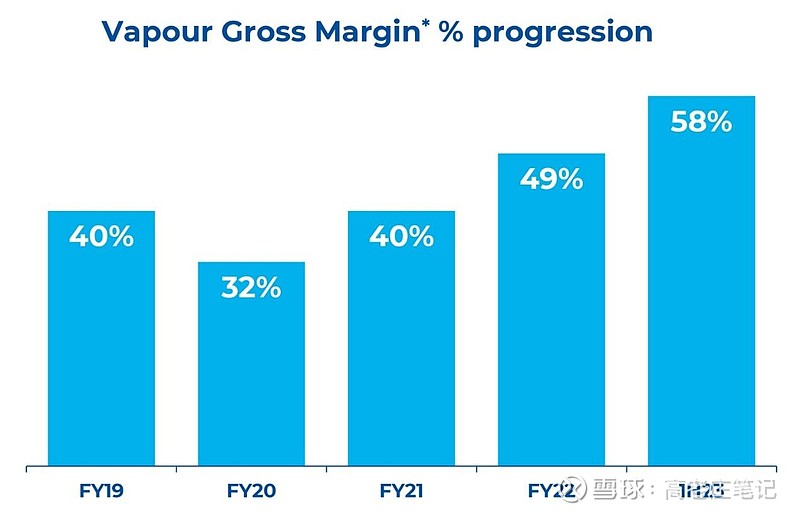 资本市场大会中题为“Building our Brands: Vapour, Heated Products & Modern Oral”的演讲中提到了一组关于Vuse雾化产品的毛利率的数据。