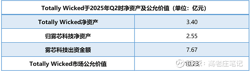 进一步对比雾芯科技《2025年Q1业绩报告》、《2025年Q2业绩报告》中资产负债表中其他异动科目。拆解后,主要增量科目有——1、固定资产增加约1.55亿元;2、无形资产增加约1.95亿元;3、库存增加约1.12亿;4、应收款增加约0.7亿元。增量相加后呈现给投资者关于Totally Wicked的简化资产负债表如下:总资产约5亿元,总负债约1.6亿元,净资产约3.4亿元。