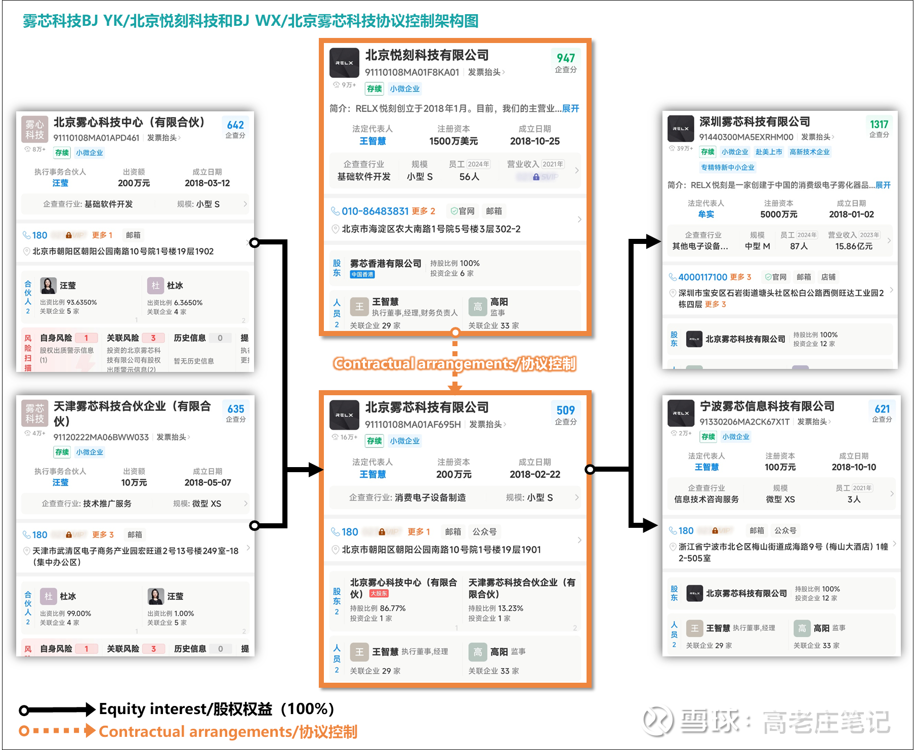 BJ YK/北京悦刻科技(WFOE公司)于2018年10月成立,由Relx HK全资持有。同月,BJ YK/北京悦刻科技和BJ WX/北京雾芯科技签订控制协议。