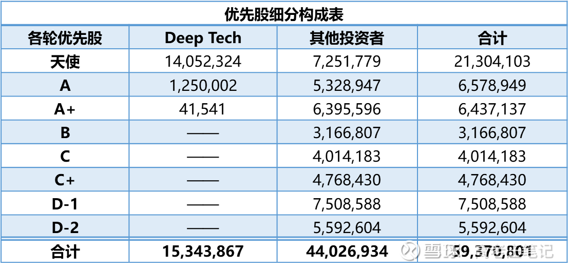 由于雾芯科技/RLX Tech后续历年年报都单独披露源码资本全资控股Deep Technology Linkage Fund(下简称“Deep Tech”)持有的股数,所以进一步将优先股构成拆分出来——1、Deep Tech共持有15,343,867股;2、其余投资者持有44,026,934股。
