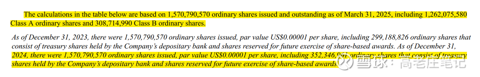 总股本确实未曾变过,一是二级市场回购的股份一直以库存股形式存在,并未注销(账面价值2.88487亿美元,每股成本约1.83美元);二是各类股权激励的股份均来自于BJ BJ Limited(持有224,935,770股)持股平台。