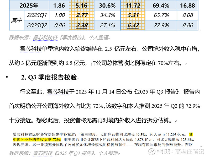 境外收入推测的文章。恰巧本次Q3报告雾芯科技首次公布了该比例。校验后基本准确。(全文后续再发)