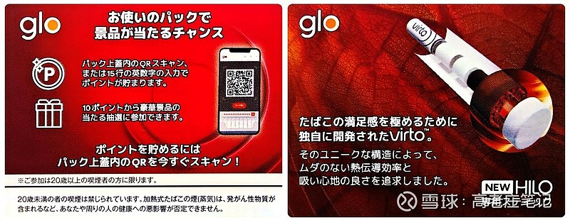与仅在仙台试销的版本不同,Hilo烟支全国版在每个烟盒内都附有一张介绍卡片:其正面提醒消费者可扫码积分,背面则简单解析了Glo新款Hilo所采用的独特烟支结构。
