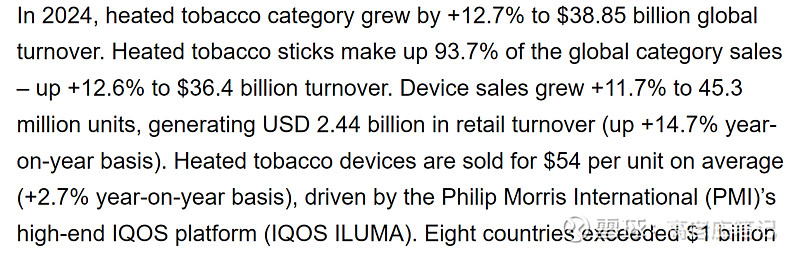 Tobacco insider公布2024年HNB烟具销量较2023年的4055万台同比增加11.7%至4530万台。如果70%的量为IQOS,则对应2023年、2024年的烟具销售量分别约为2838万台和3171万台。PMI公布其IQOS用户在2022年、2023年分别为2580万和2860万。