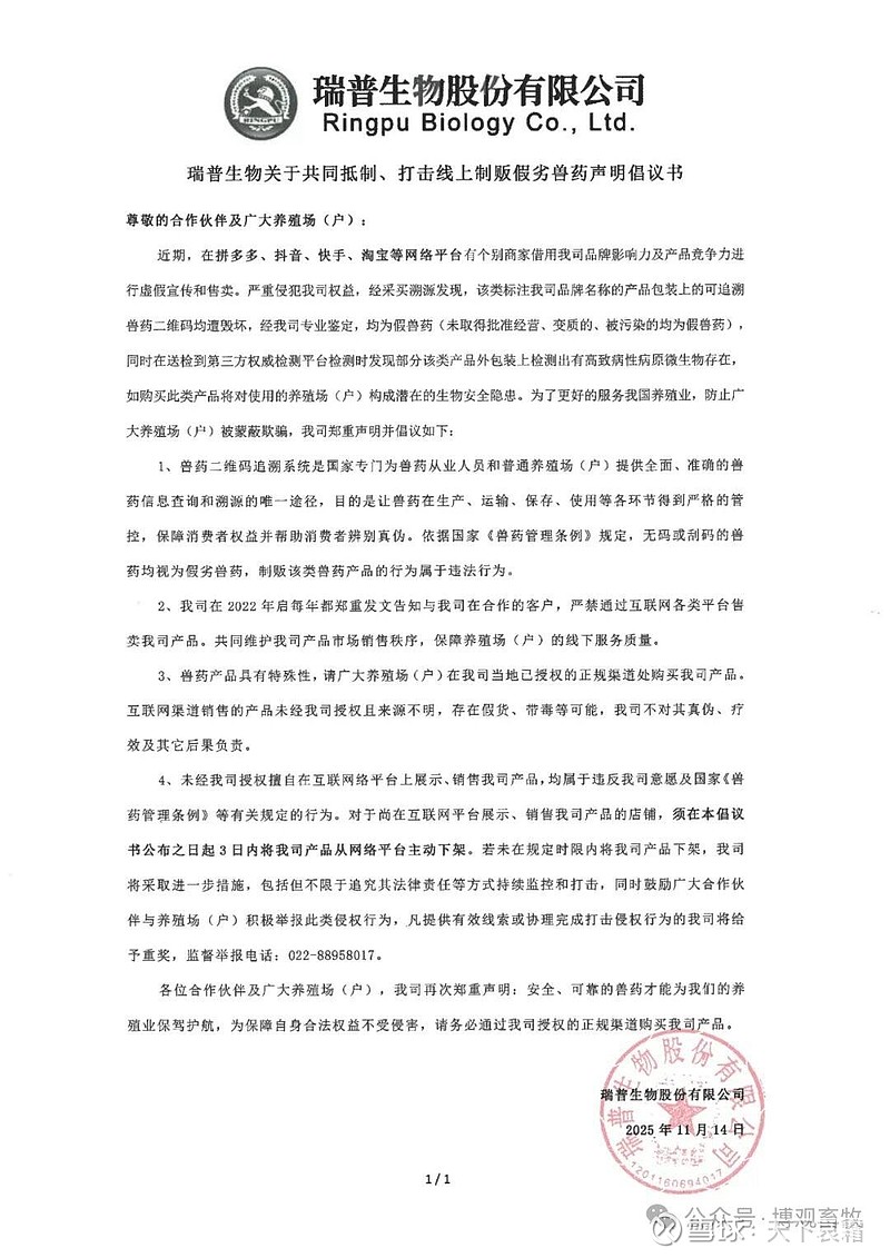 今年国家查了好多兽药造假的事件,尤其是今年线上渠道,农业部抽查结果全军覆没,几乎100%假药或劣质药。这或许就是瑞普第一个站出来呼吁维护行业环境的关键。现在养殖业很难受,服务养殖业的动保行业,也非常难受,行业大洗牌和出清是必然的,参考欧美经验,最后动保领域,可能只存在少数头部玩家。