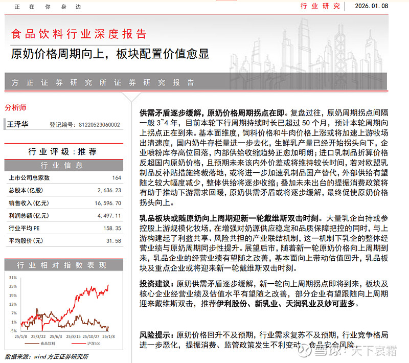 干货很多,逻辑也很硬的深度报告,我基本都buy in,也计划接下来逐渐把中短线盈利往伊利和天润乳业的仓位上转移(可能再加个新希望)。