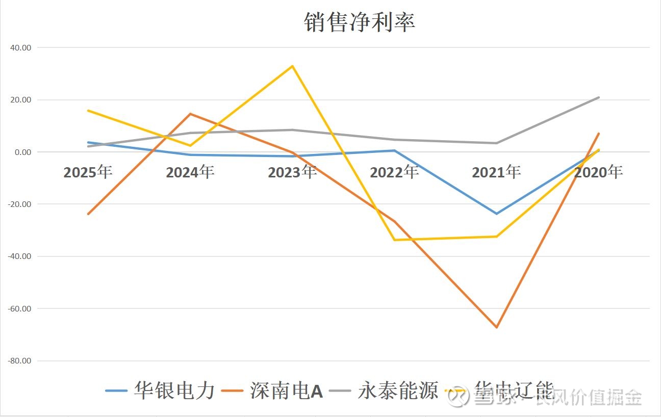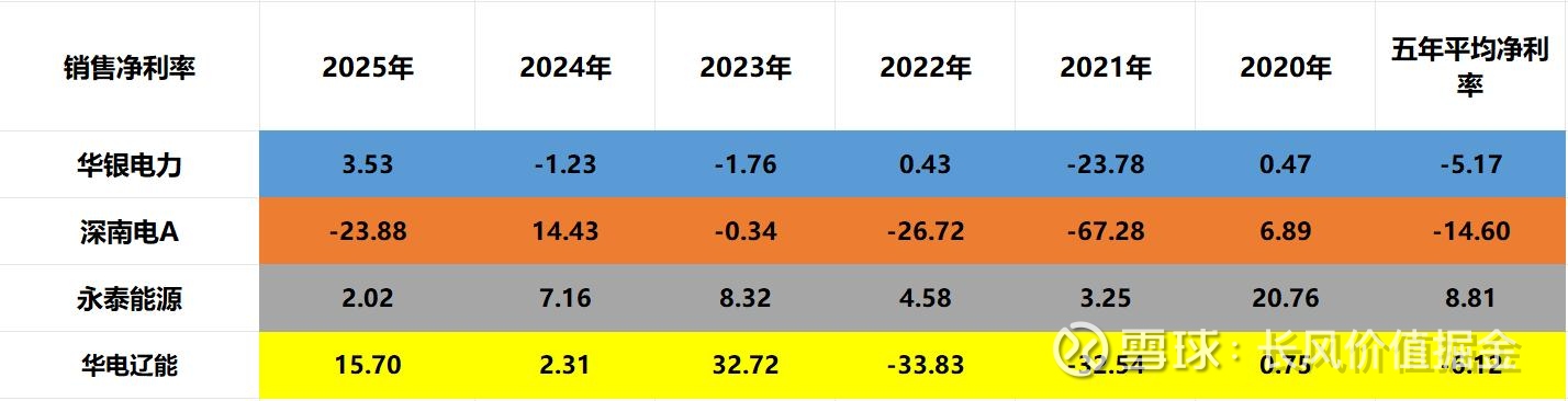 四家公司的净利率,深南电A和华电辽能在过去五年有所上升。其余两家公司均呈下降态势。