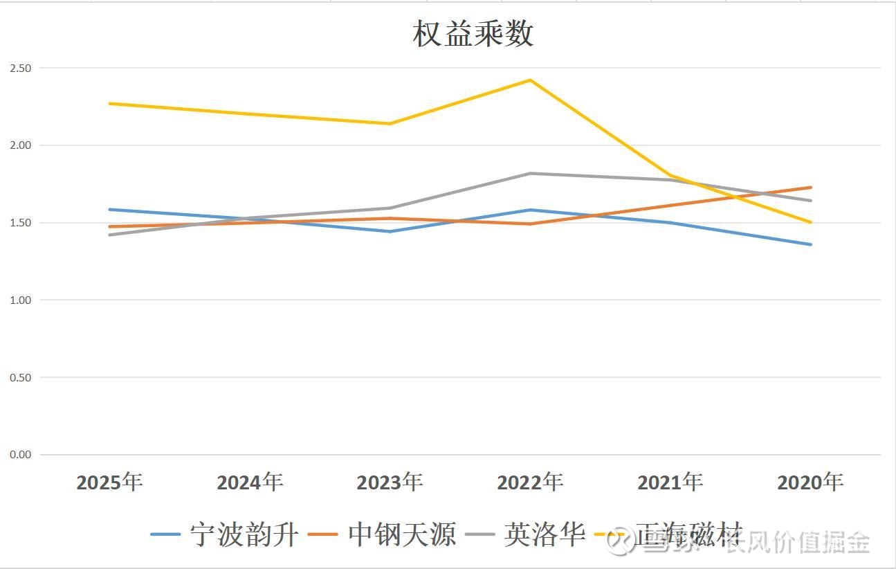 一季度,财务杠杆最高的是正海磁材2.27倍,其次宁波韵升,再次中钢天源,再次英洛华。
