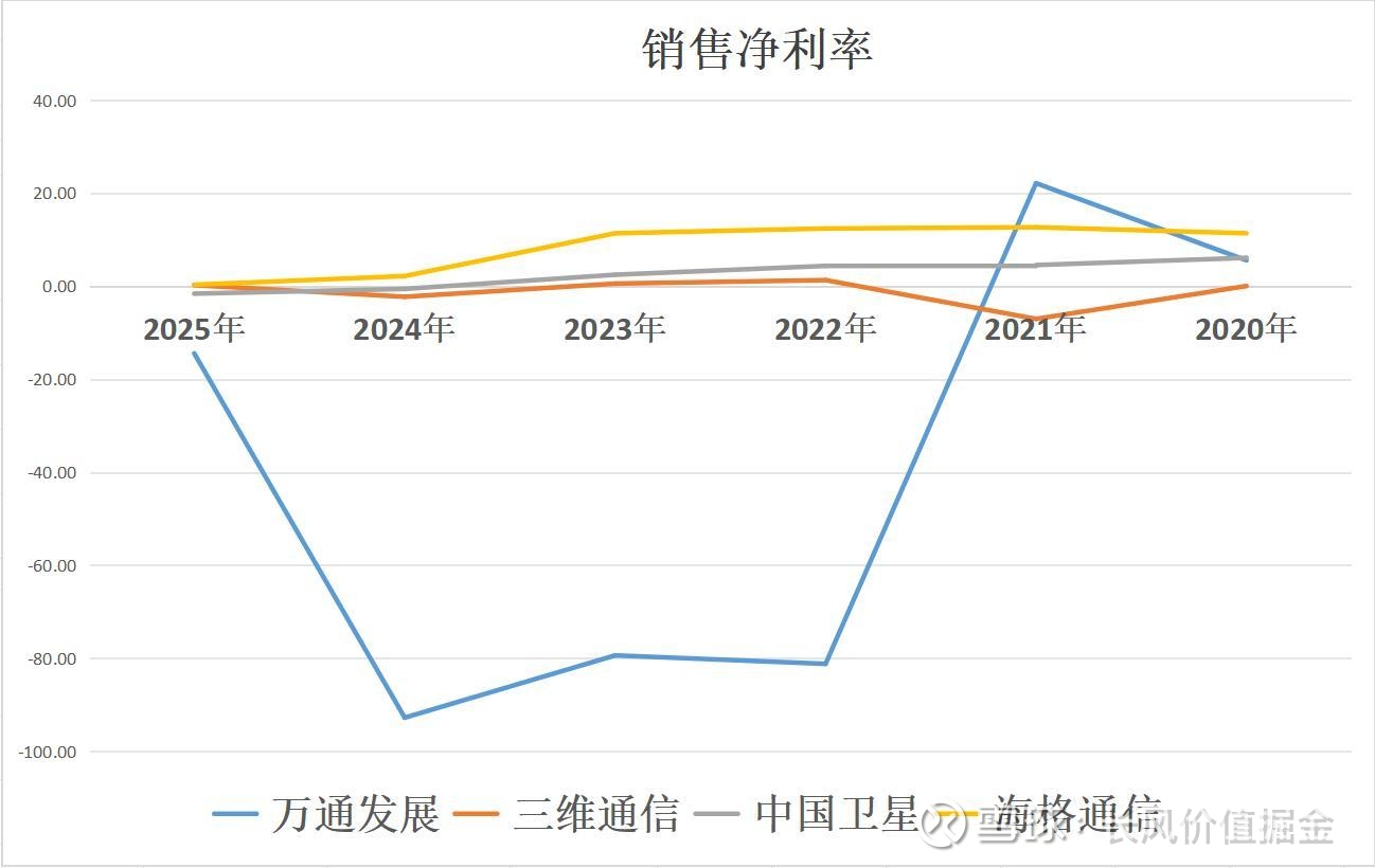 二季度,盈利能力最强海格通信,每100元收入,有0.3元利润。其次三维通信, 再次中国卫星,再次万通发展。