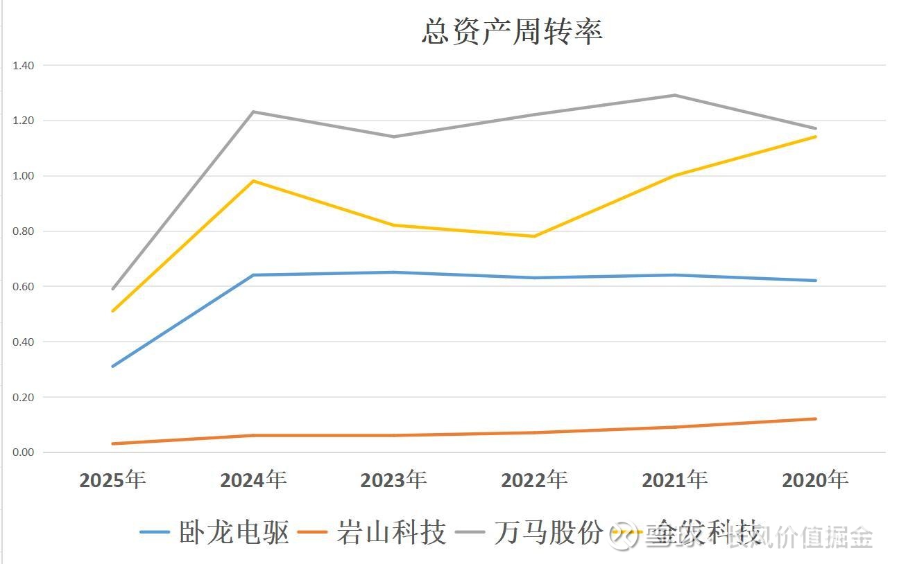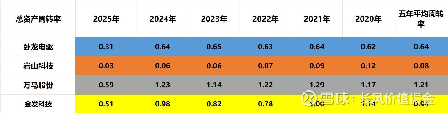 二季度,周转速度最快的是万马股份,总资产周转0.59次。其次,金发科技,再次卧龙电驱,再次岩山科技。