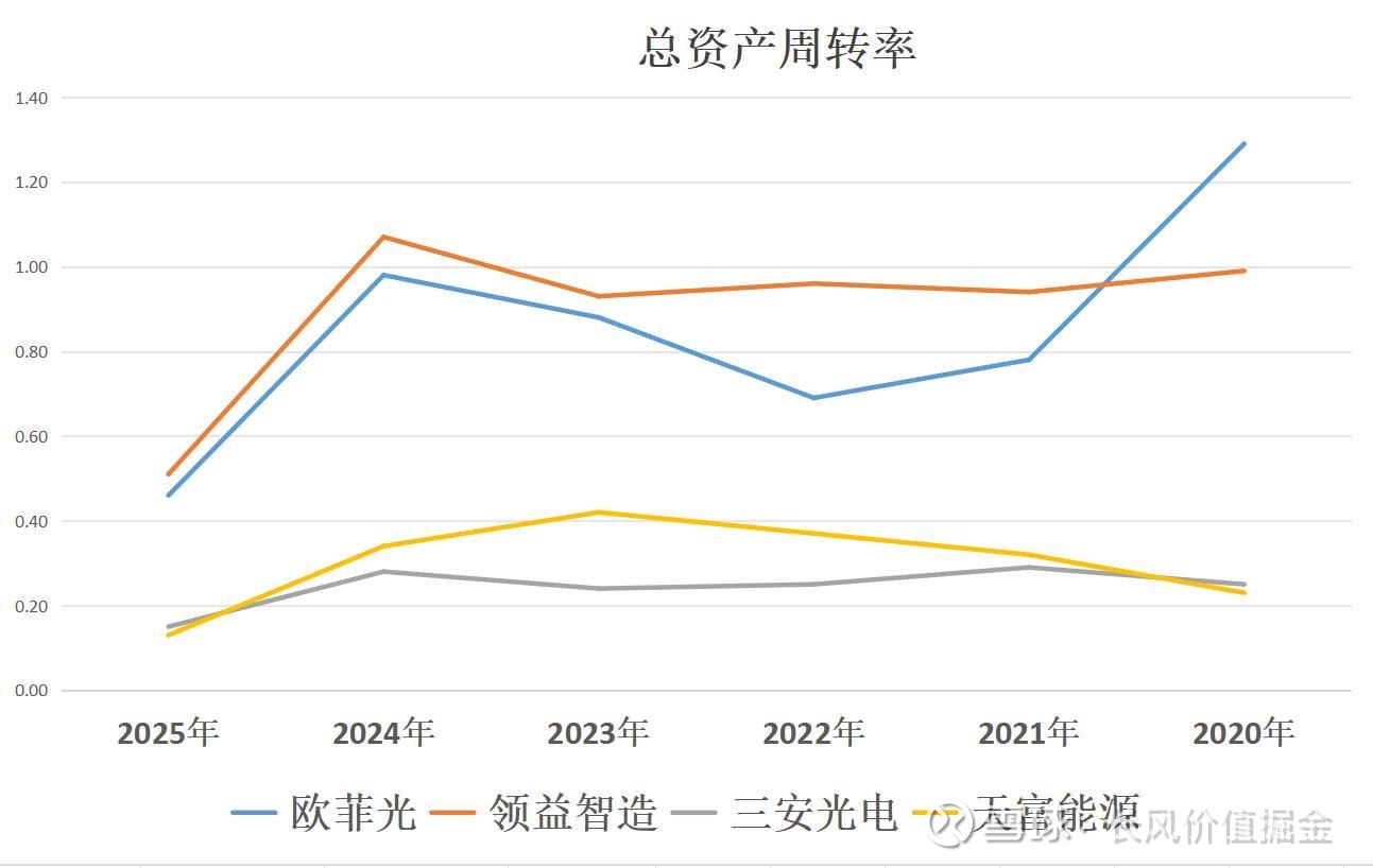 二季度,周转速度最快,领益智造,总资产周转0.51次。其次,欧菲光,再次三安光电,再次天富能源。