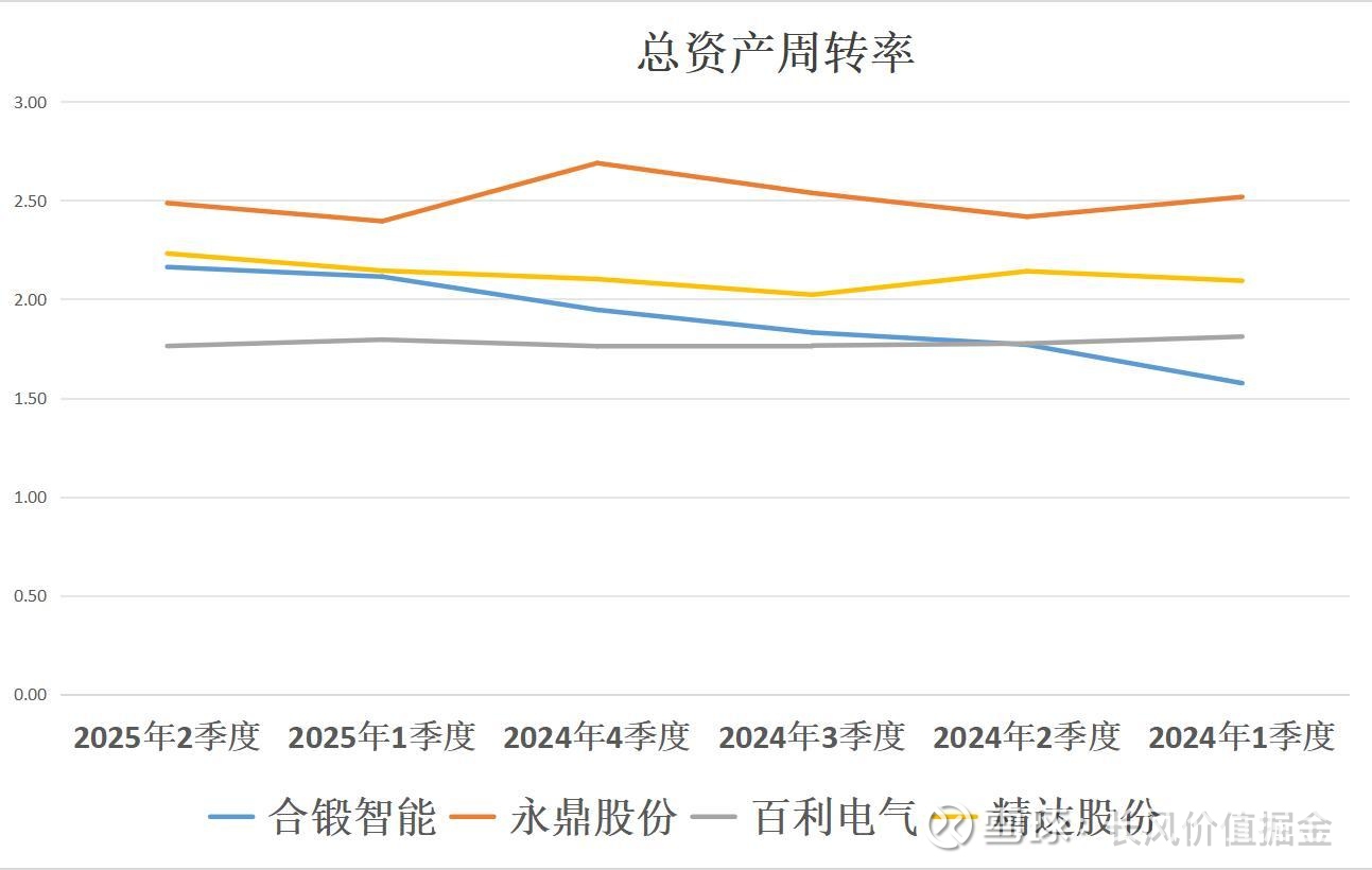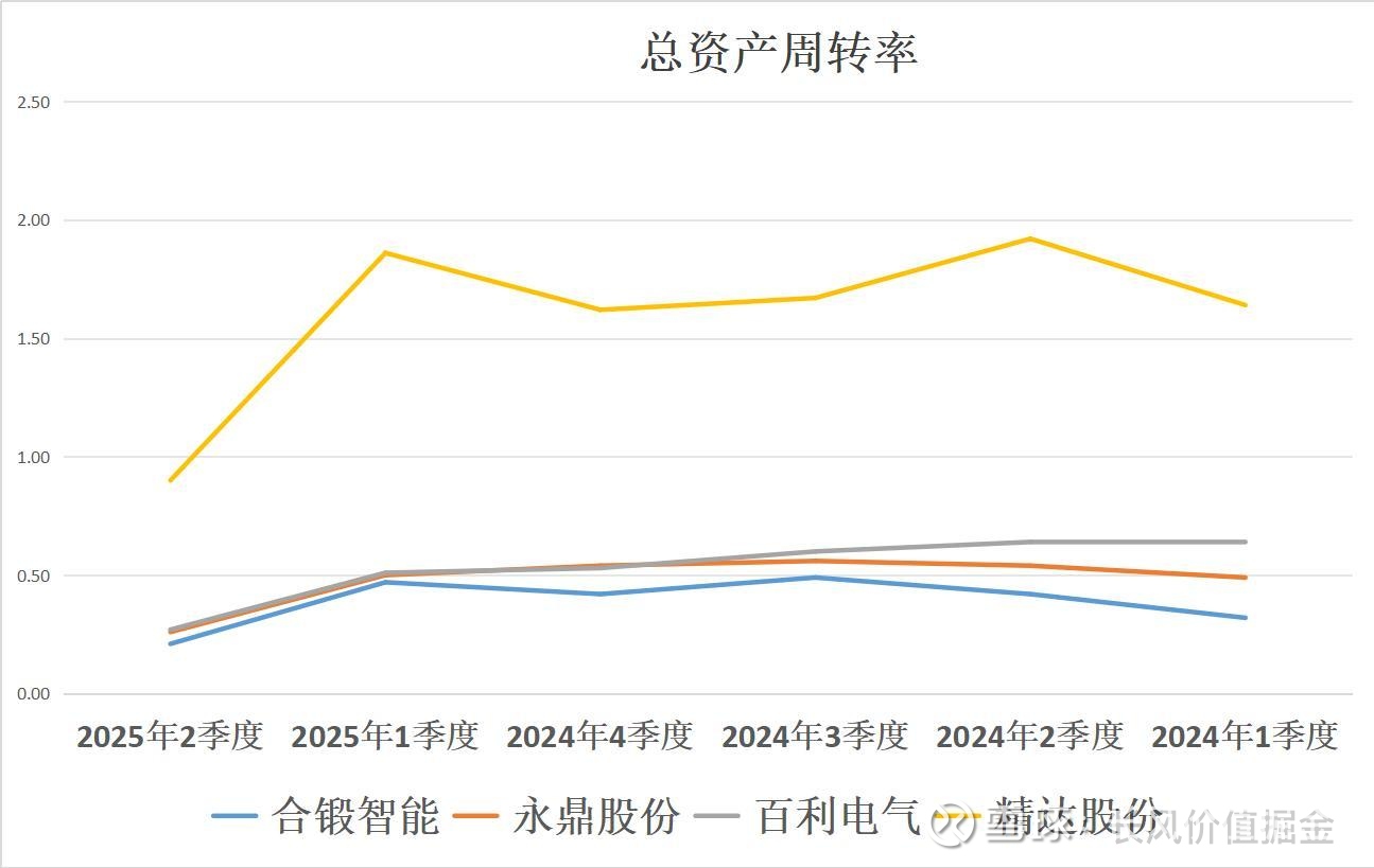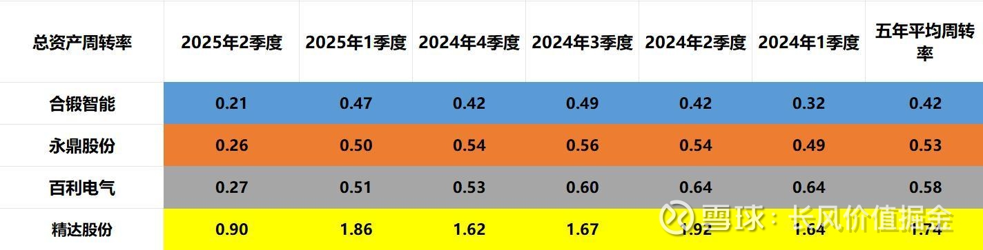 二季度,周转速度最快精达股份,总资产周转0.9次。其次百利电气,再次永鼎股份,再次合锻智能。