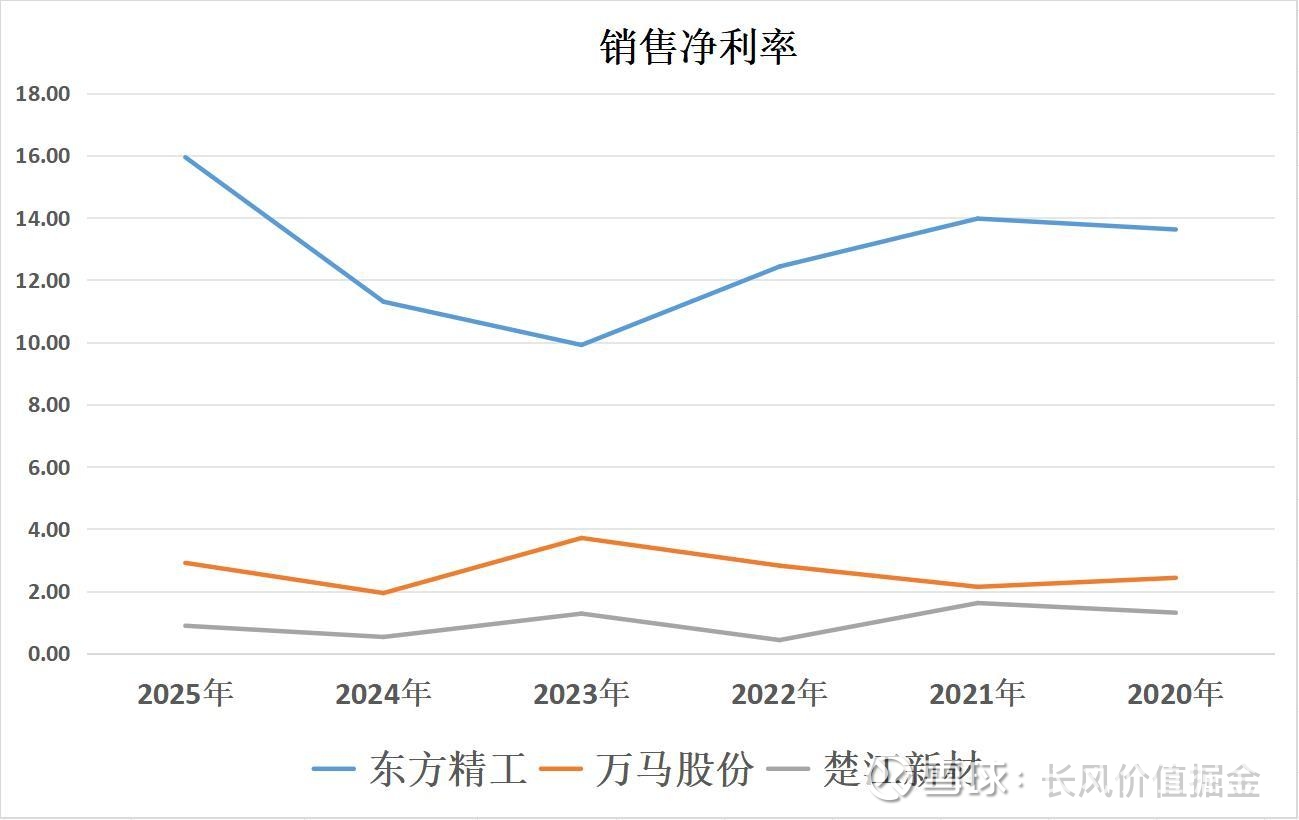 第三,楚江新材4.09%,盈利第三,周转第一,财务杠杆第二。利润率低但周转速度极快,属于薄利多销型。但利润率和东方差太远,只能屈居第三。