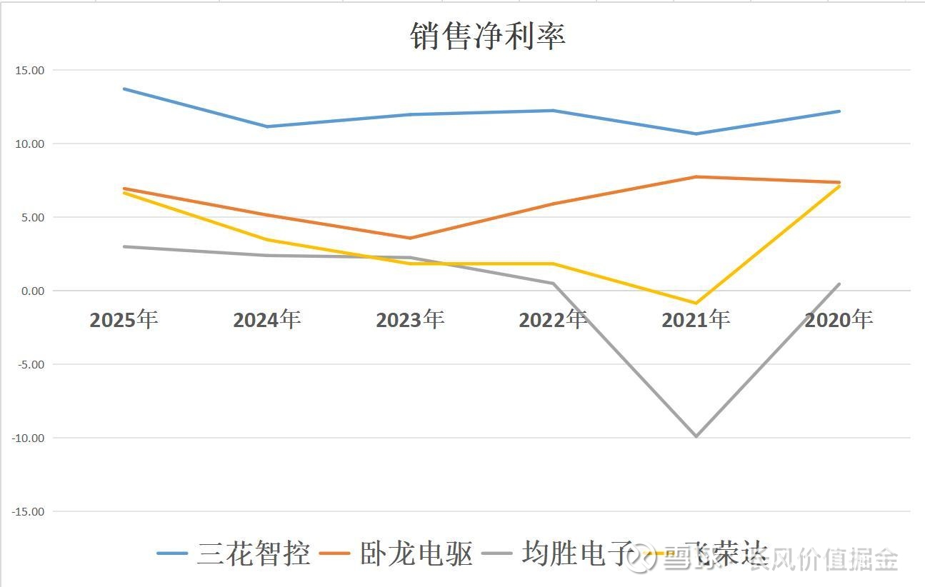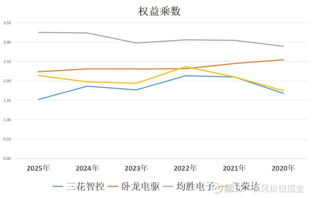 净资产收益率最高,三花智控10.25%,盈利第一,周转第二,财务杠杆第三,以最低的财务杠杆,反而创造了最高的收益率,含金量不言而喻。