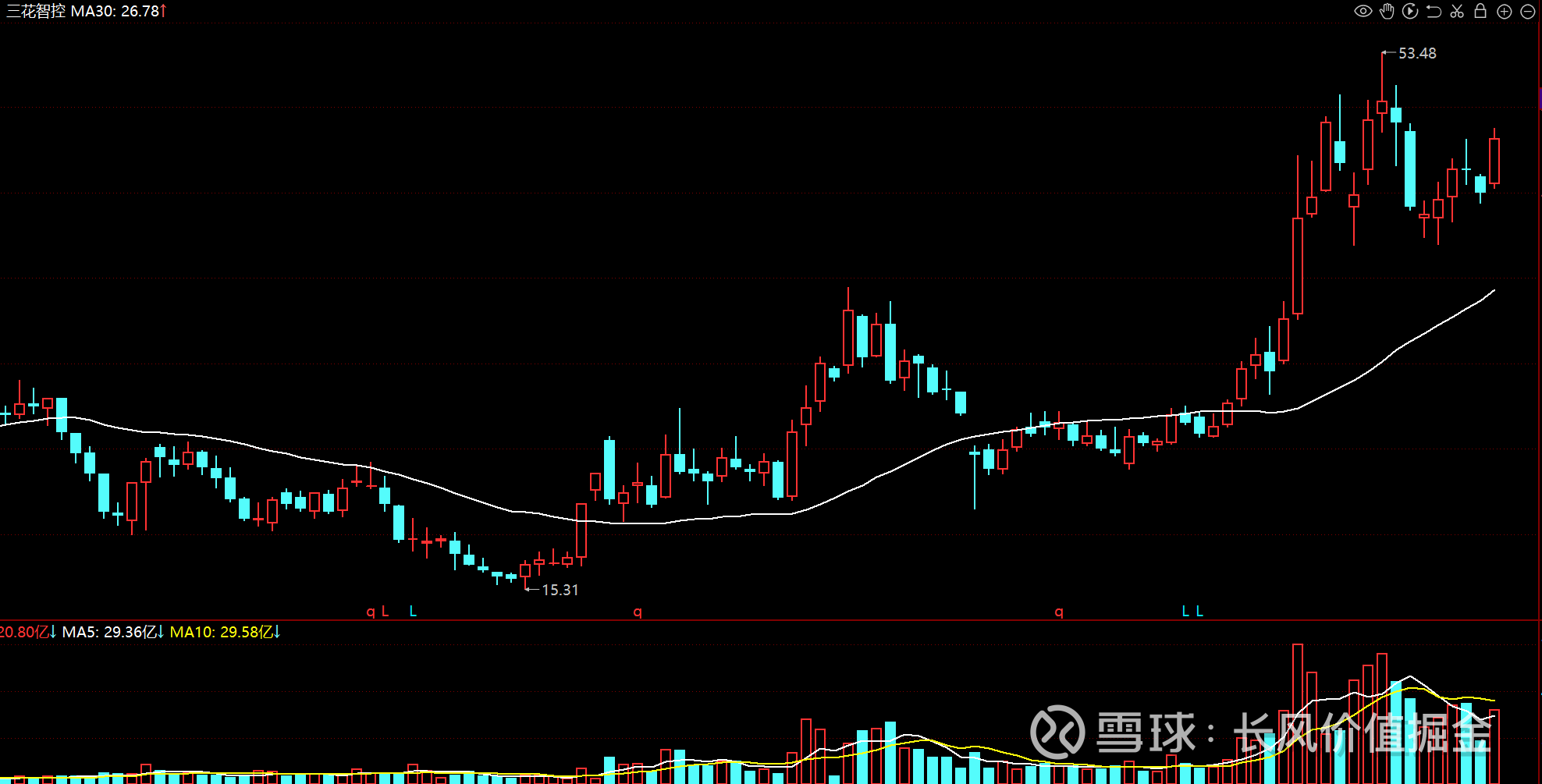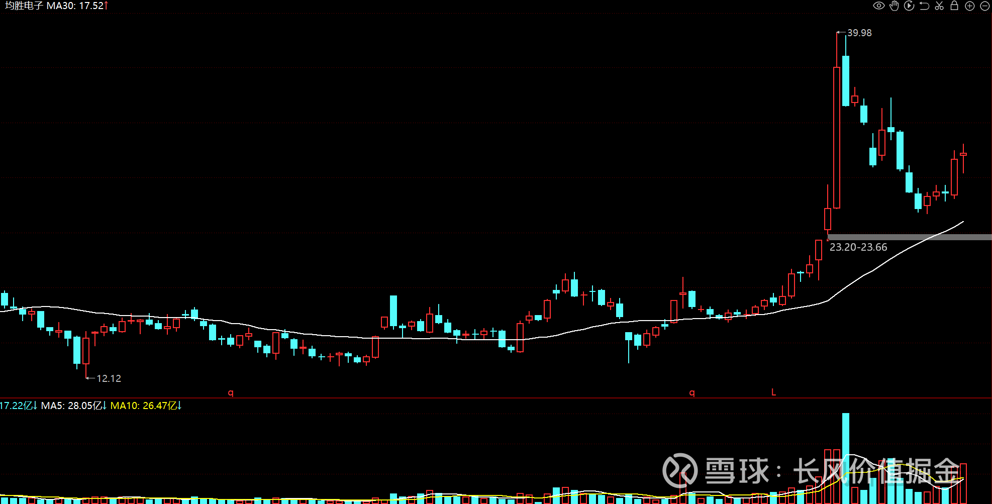 周线趋势向上,价格缩量回调至均线附近掉头。近五周累计涨幅25.6%。