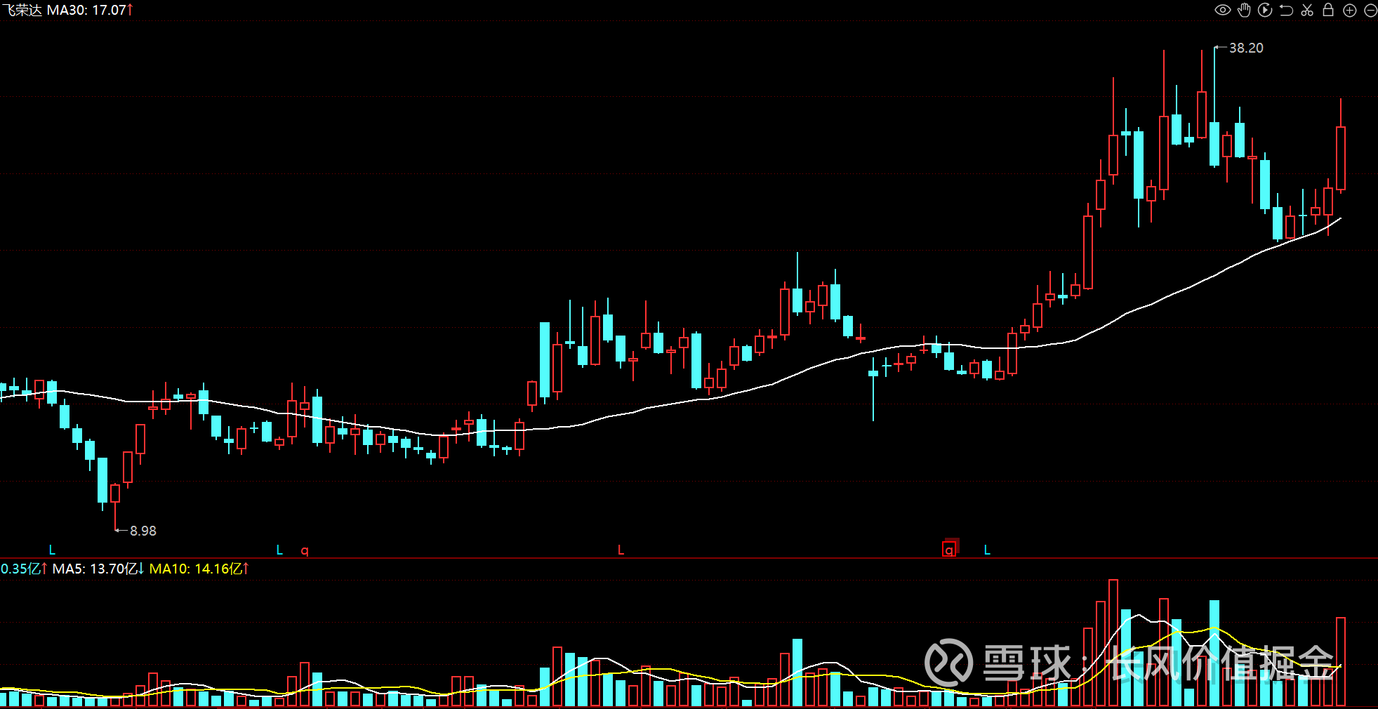 周线趋势向上,最近价格又缩量回调至均线附近,近5周累计涨幅14.42%。