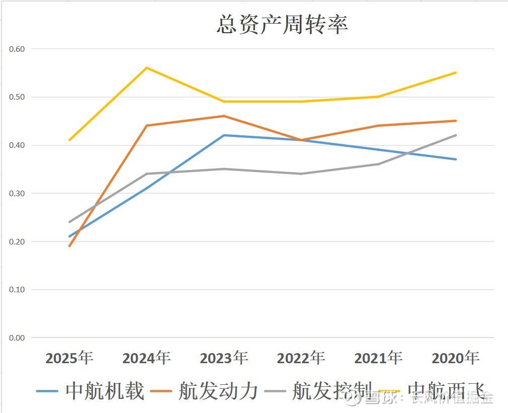 中航西飞一家的周转速度在过去五年上升。