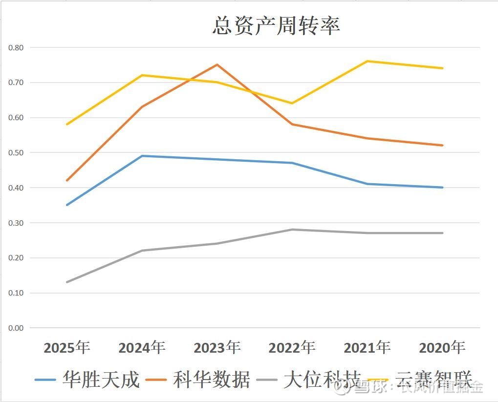 华胜天成、科华数据两家的周转速度在过去五年上升,业务规模呈扩大态势。