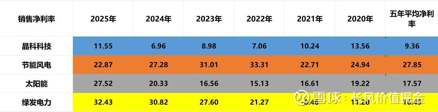 节能风电、太阳能、绿发电力三家的净利率在过去五年上升。
