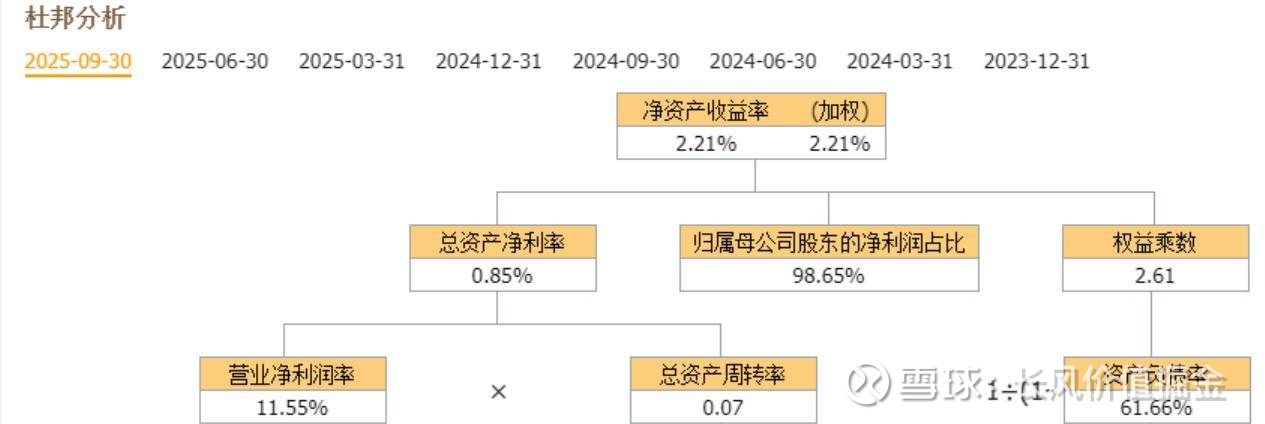 看完了公司的优势亮点,接下来,我们依然采用经典的杜邦分析法,将公司的最新三季报财务核心数据净资产收益率进行拆解,