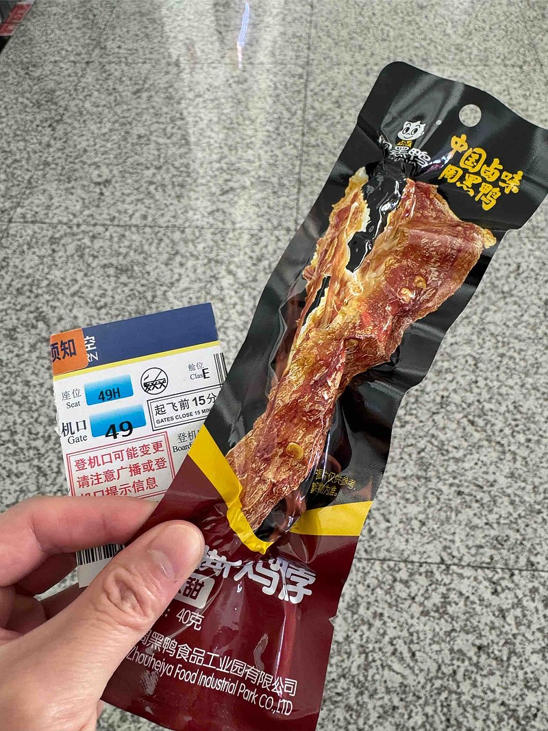 推出新品了,手撕鸡脖,凭登机牌可以免费试吃一个