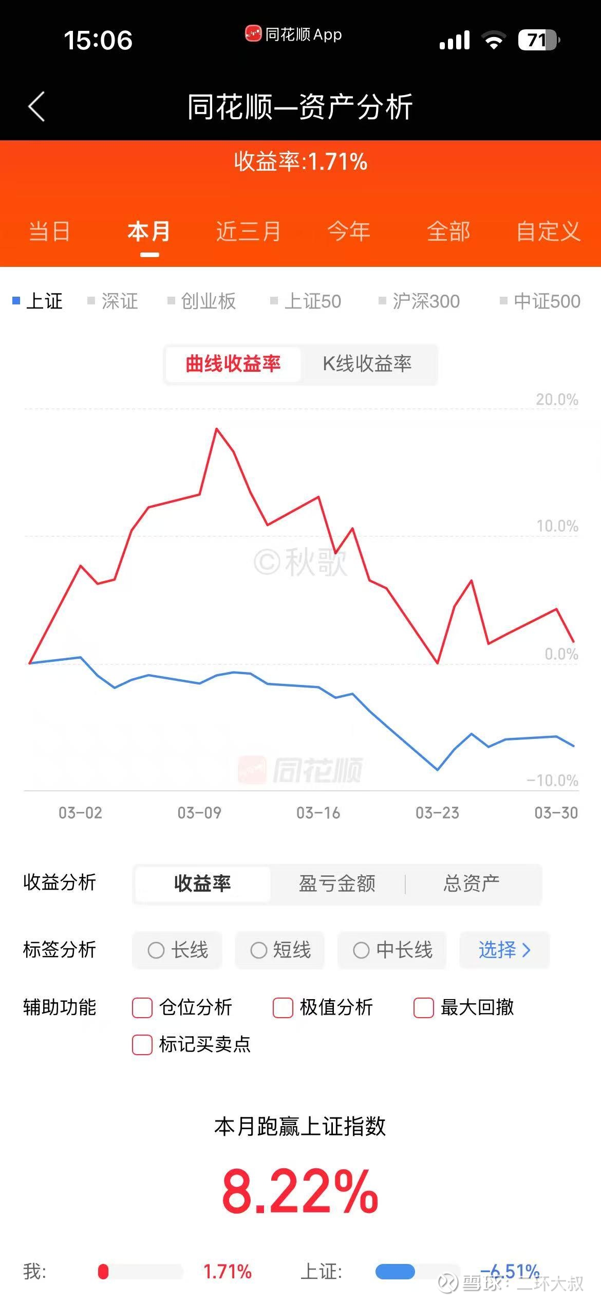 从去年给自己定每个月10%目标以来,已经连续达标6.7个月了(1月遇到黑天鹅,后面法律赔偿加起来不止10%了),这是首次不达标月份,其实月初的时候盈利已经达到了16%,无奈最后这个月只留下了1.71%的利润。哎,总结下来就是经常看好的股,破位了走的太晚。