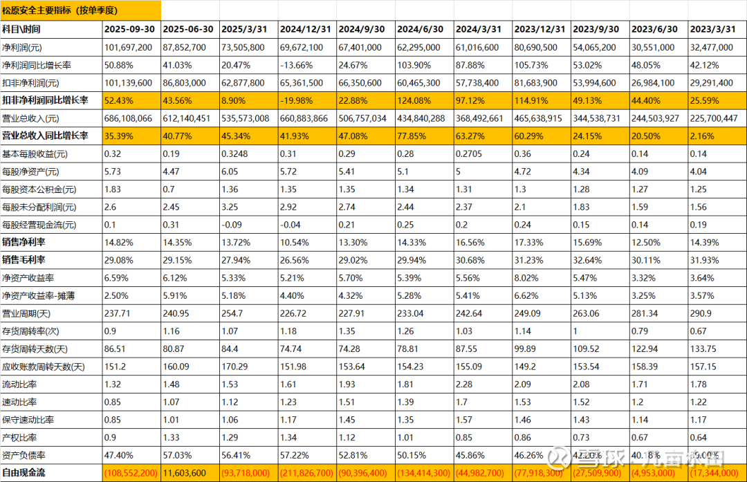 25年Q3营收同比增长35.39%,扣非净利润增长52.43%,净利润率增长50.8%。扣非净利润增长快于营收是超出我预期的,因为在这快速扩张期的企业,我一直认为营收是优于利润的,松原安全前几季度也一直是这样的。我详细去看了下合并利润表,利润改善的原因是综合的,主要是销售费用的下降、信用减值的减少造成。