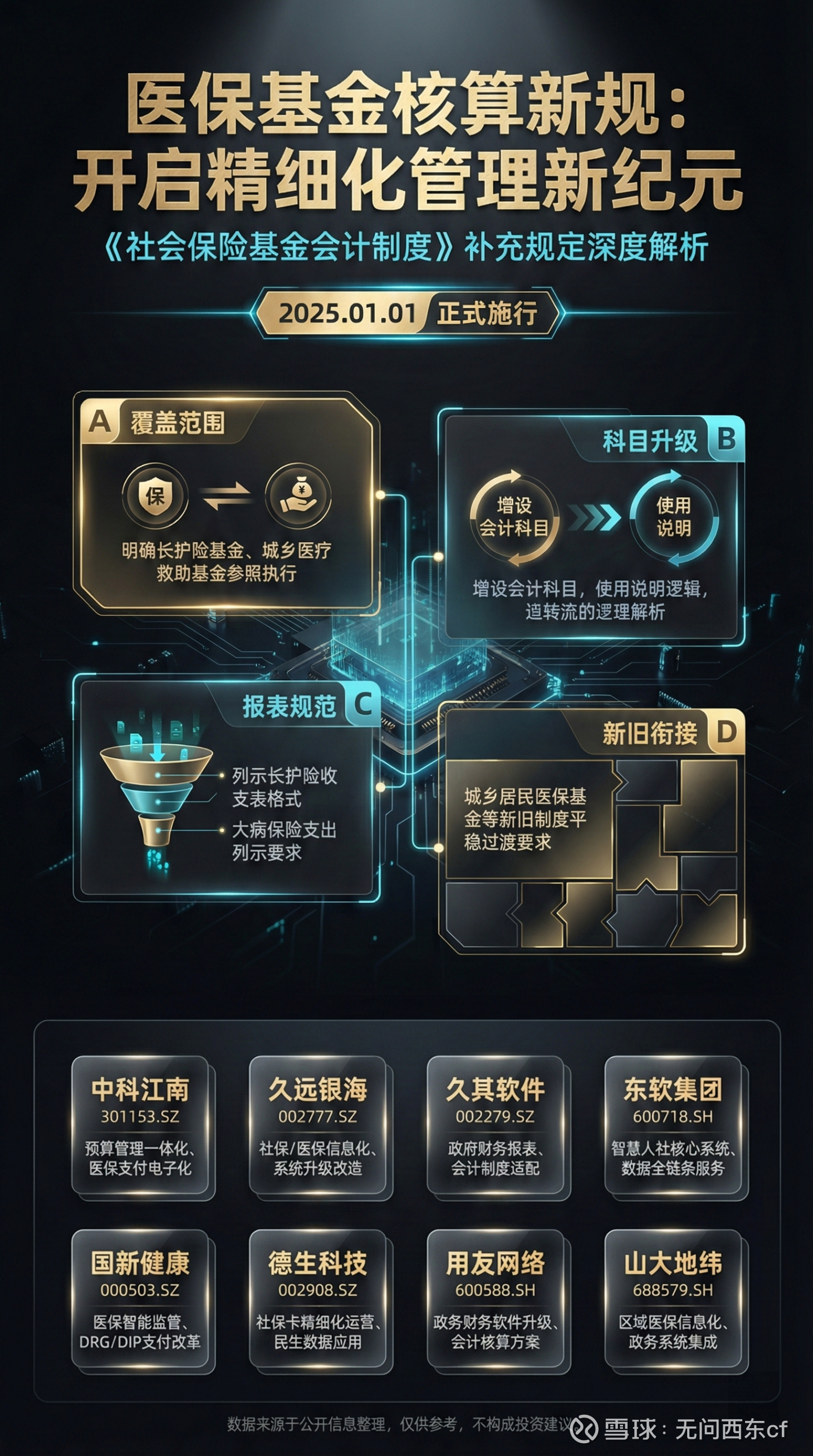 咱们干这行久的都知道,政策就是发令枪。2025年1月1日这个时间点定死在那,各地的钱袋子就得赶紧动起来。全国几千个医保经办机构,账本现在全得翻新。这可不是改几个数字那么简单,这是底层的会计逻辑全换了。存量系统改造是第一波刚需。新科目要加,旧账要平。这种活儿具有排他性。原来是谁做的系统,现在还得是谁去改。新系统的模块化改造,直接对应的是真金白银的订单。这就是咱们常说的“确定性溢价”。