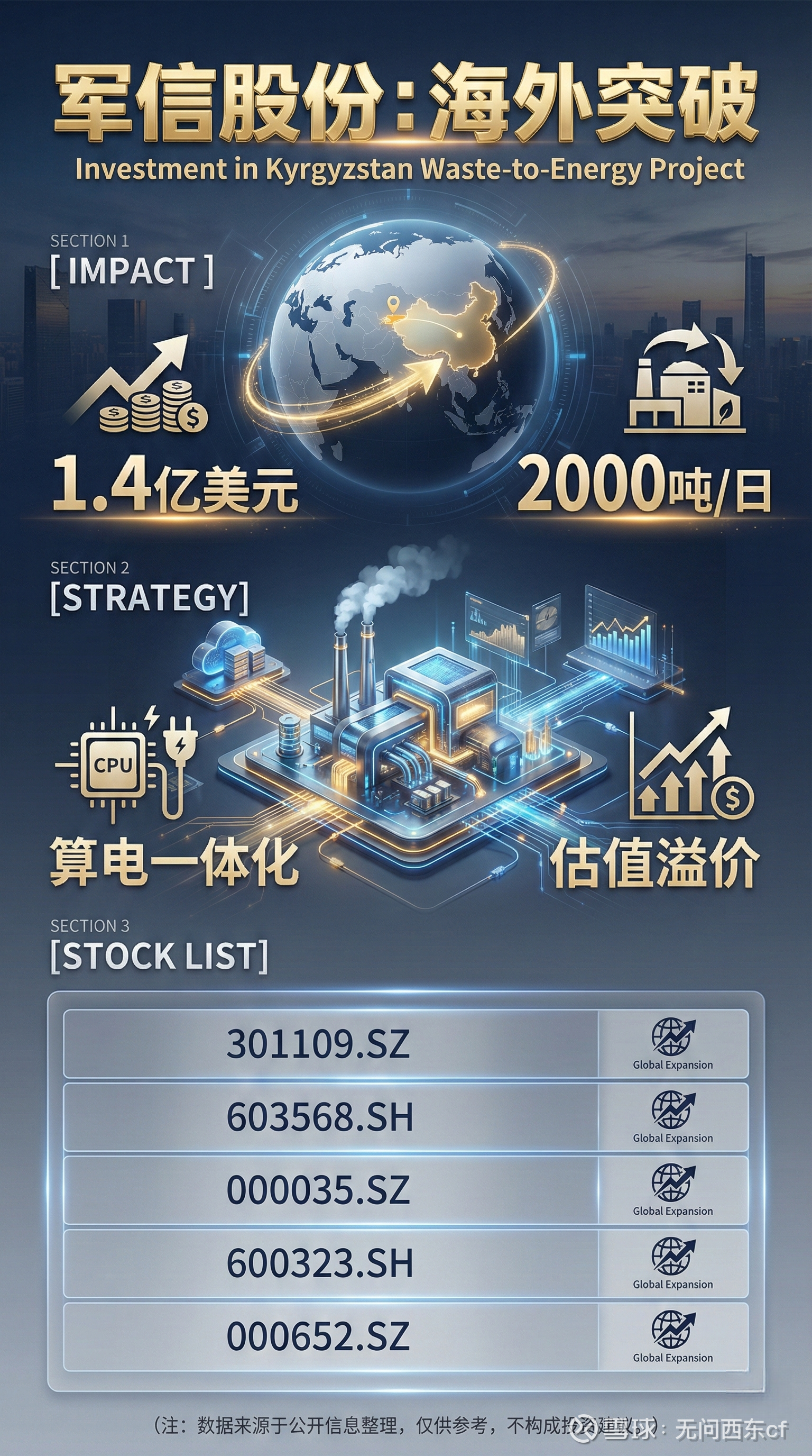 当国内环保行业步入存量竞争、电价补贴退坡的“深水区”时,一家来自湖南的环保领军企业——军信股份(301109.SZ),却在“一带一路”沿线的中亚重镇吉尔吉斯斯坦落下一记重棋。1.4亿美元投资、日处理2000吨、全球化扩张……这不仅是一次地理版图的跨越,更是一场关于“算电一体化”与“估值溢价”的深刻产业变革。