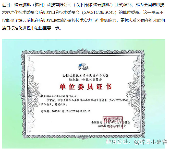 作为熵基科技旗下专注于脑机接口技术研发的核心力量,熵云脑机以多模态AI技术与脑机接口深度融合为驱动,精准布局教育、医疗、养老三大场景,致力于以创新科技赋能人类未来。此次当选单位委员,熵云脑机将深度参与国家脑机接口标准体系建设,为行业规范化、高质量发展注入强劲动力。