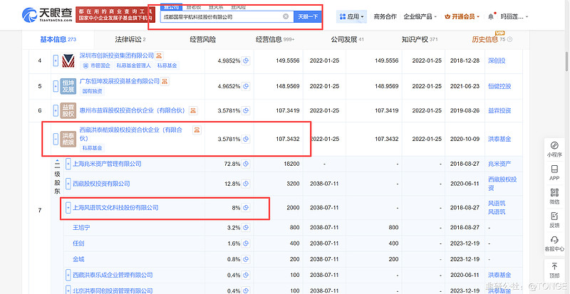 风语筑(603466):通过西藏洪泰酷娱股权投资合伙企业(有限合伙)持有国星宇航3.5781%的股份。