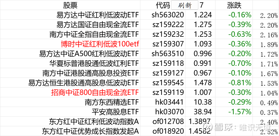 现在持仓红利类基金13只。包括三只现金流(全指,国证,800),3只港股红利(恒生红利低波,中证港股通,标普港股通),3只红利低波(红利低波,红利低波100,A500红利低波),两只通过沪港通买入的香港红利基金(南方东西精选,平安高股息),和两只东方红的场外基金(红利低波,优势成长)。总持仓占比22%。这部分是持仓的基础,总预备队不动。