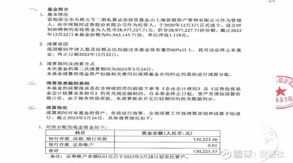 2022年10月左右,雷根添宝五号出现逾期,当年12月进入清算状态。