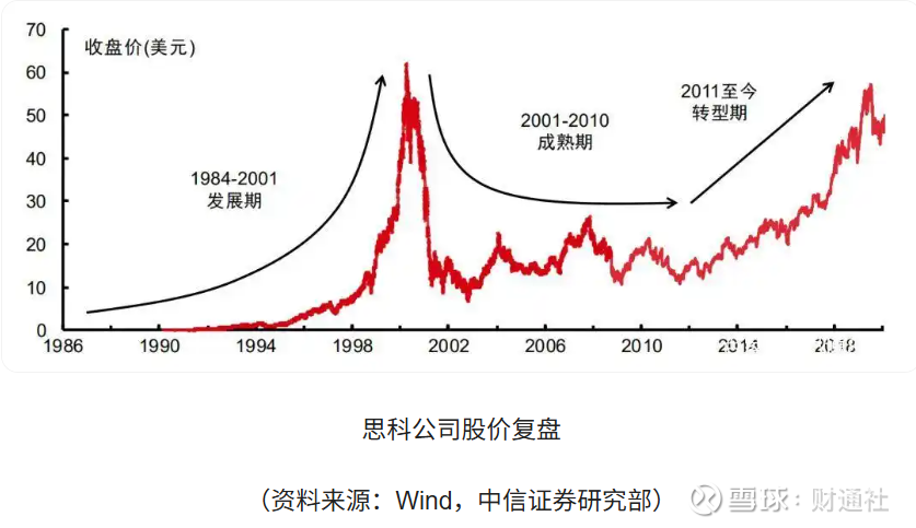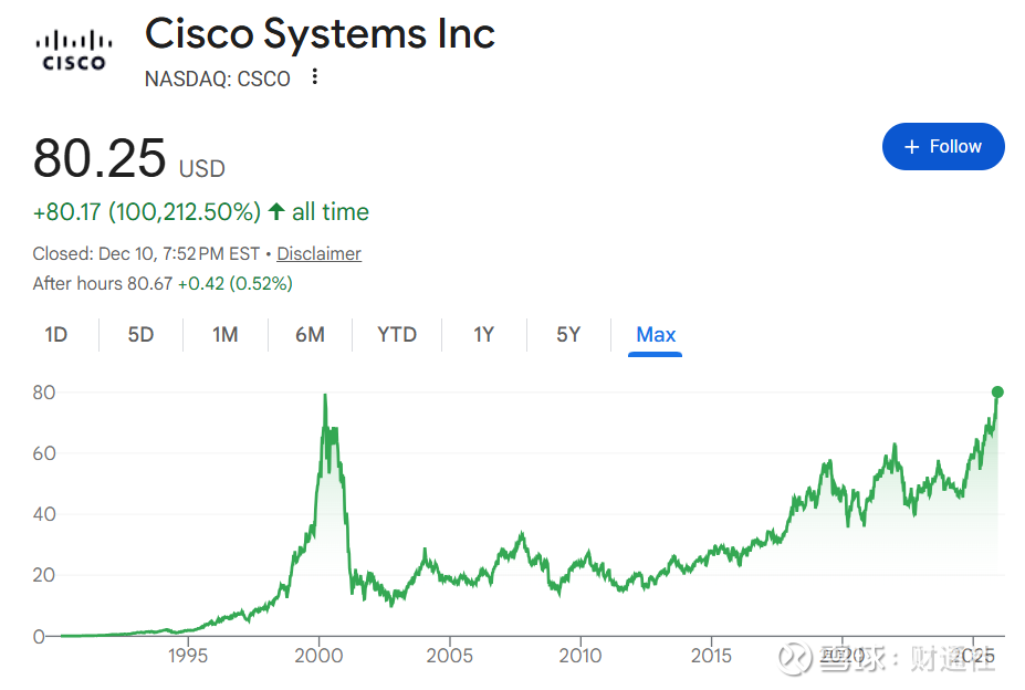 自那以后,随着转型策略的驱动,思科的股价又上涨了800%以上。然而,其市值仍比互联网泡沫时期的峰值水平低40%以上。