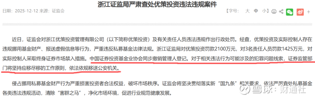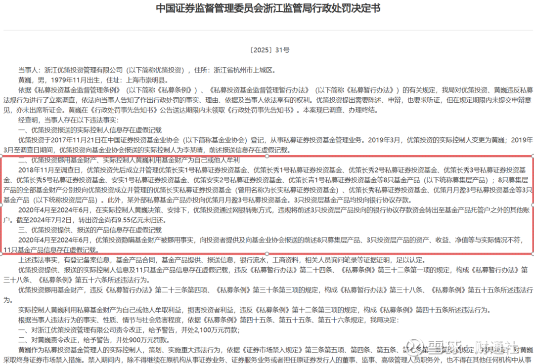 公司层面,优策投资被处以2100万元罚款并撤销管理人登记;
