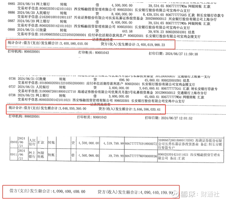 2024年7月初,投资者发现基金账户余额明细表并未如期公布,且在长安银行打印的账户流水凭证显示,协议存款仅剩下8.6万元。