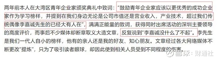 2020年10月在粤港澳大湾区青年企业家颁奖典礼上,他曾放言:“李嘉诚先生在我们身边算不了什么,身家也好,企业规模也好,算不了什么,其实长和系的市值才不到2000亿,算不了什么,大家应该把眼光看开一些。”